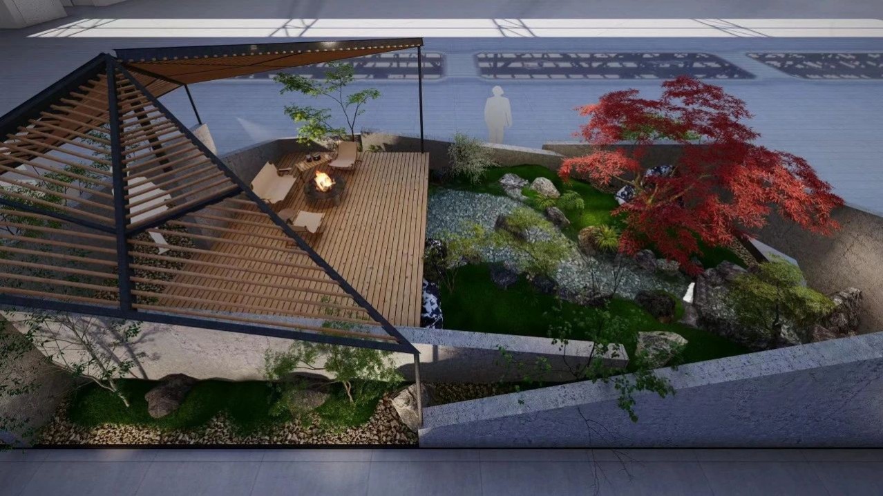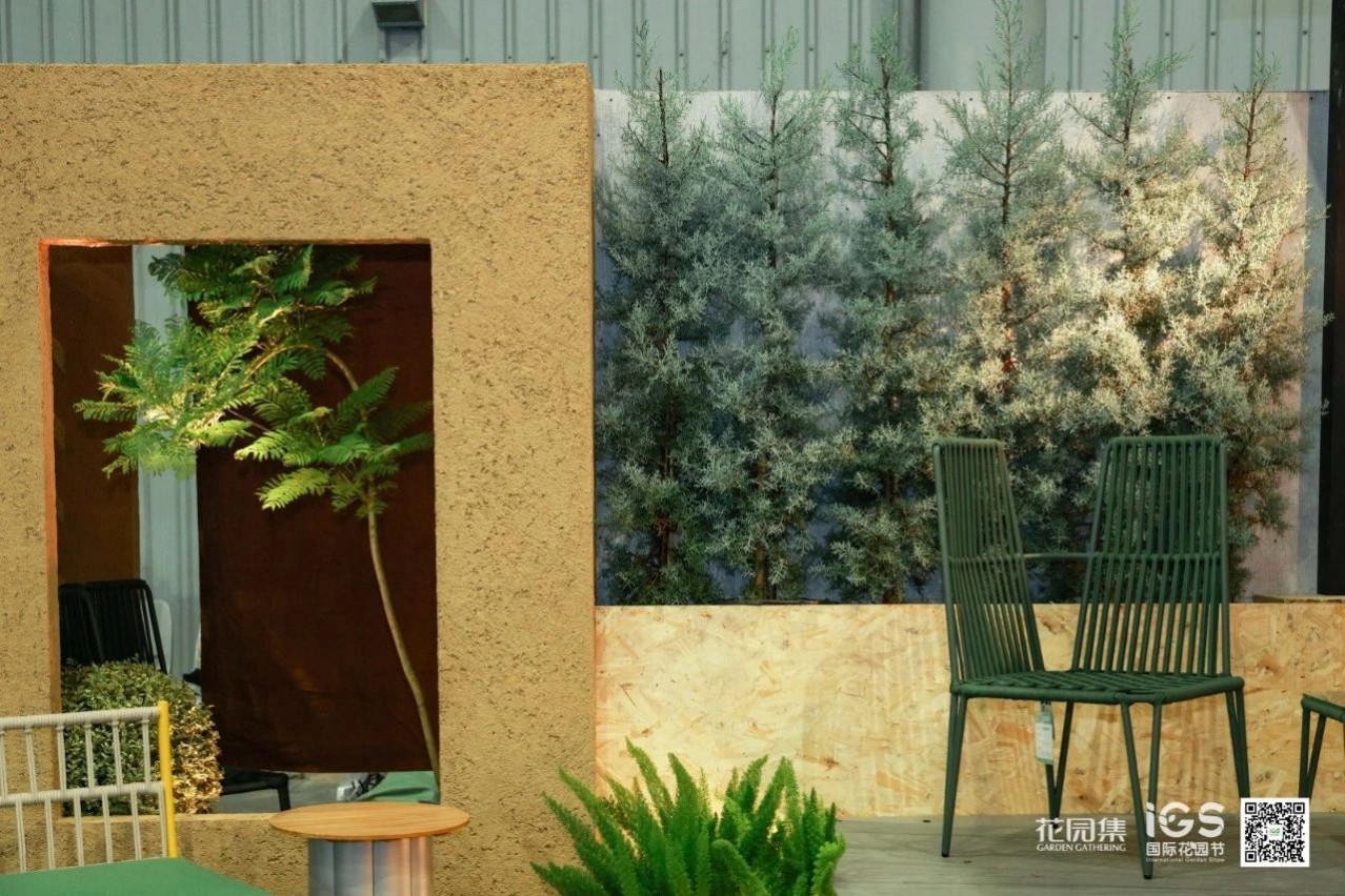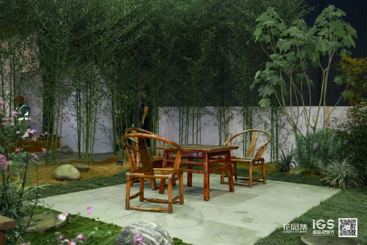 空間承載并展示了休閑、聚會、烤火等庭院常用的三大功能。這樣的展示設計貼近生活,詮釋了花園的生活意義。