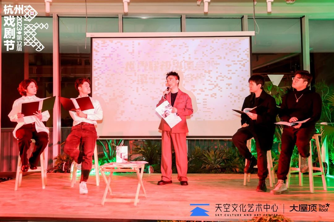 大屋頂過往文化內容營造案例,從左至右依次為「杭州閱讀生活節」、「大屋頂×單向青年節」、「造像藝術節」、杭州國際戲劇節