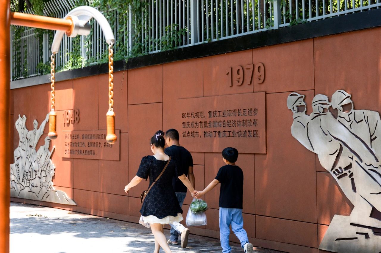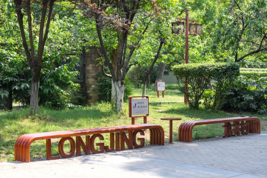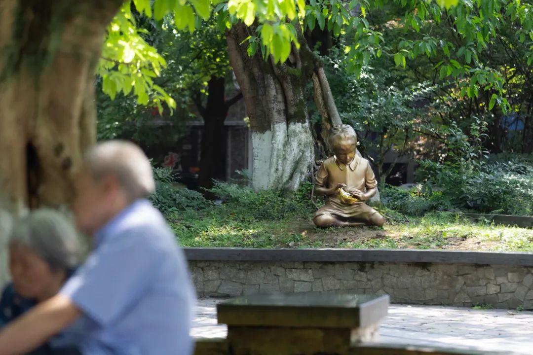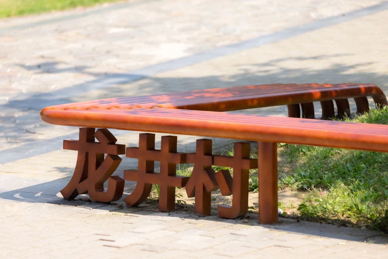 龍井公園地處龍井村核心地區(qū),緊鄰廣益中學(xué)和農(nóng)貿(mào)市場(chǎng),承載著居民日常休閑活動(dòng),是龍井村更新提升中重要的一環(huán)。設(shè)計(jì)通過(guò)更新場(chǎng)地的功能設(shè)施,增設(shè)文化景墻、休閑健身設(shè)施、公共休閑座椅,有效提升了公共空間的美觀度、舒適性與便利性。改造后,人們?cè)跐夂竦奈幕諊锘顒?dòng)休憩,瀏覽文化墻上篆刻的過(guò)往,歷史的記憶與現(xiàn)在的生活相呼應(yīng),形成動(dòng)人的空間記憶。