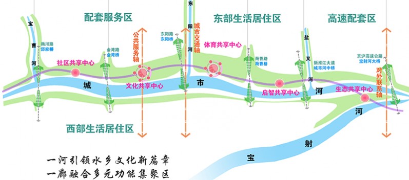 項目位于寶應(yīng)縣經(jīng)濟開發(fā)區(qū)南部,設(shè)計范圍為東起滬陜高速,南鄰七里路—寶射河,西至寶曹河,北臨人民路,總用地面積約56.25公頃。該項目規(guī)劃打造“一河一廊五心多軸”的整體空間結(jié)構(gòu)。同時對范圍內(nèi)各用地的功能性質(zhì)、優(yōu)勢項目,以及所需配套進行研究,串聯(lián)各類用地,注入文化、休閑和生態(tài)等多種元素,將該片區(qū)打造成多元融合的城市公共片區(qū)。激發(fā)城市活力、達到區(qū)域功能協(xié)調(diào)、城鎮(zhèn)和諧發(fā)展的目的。